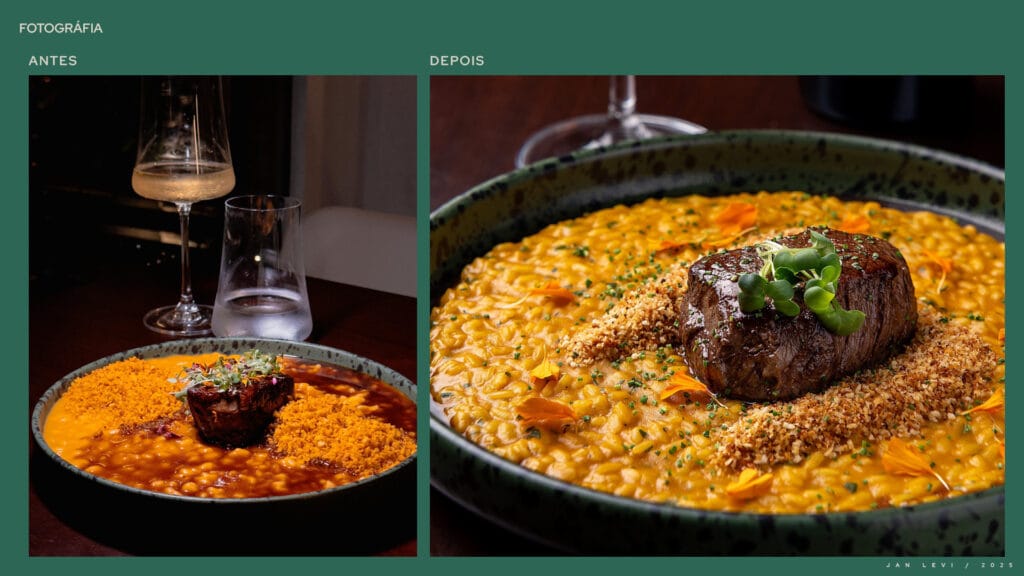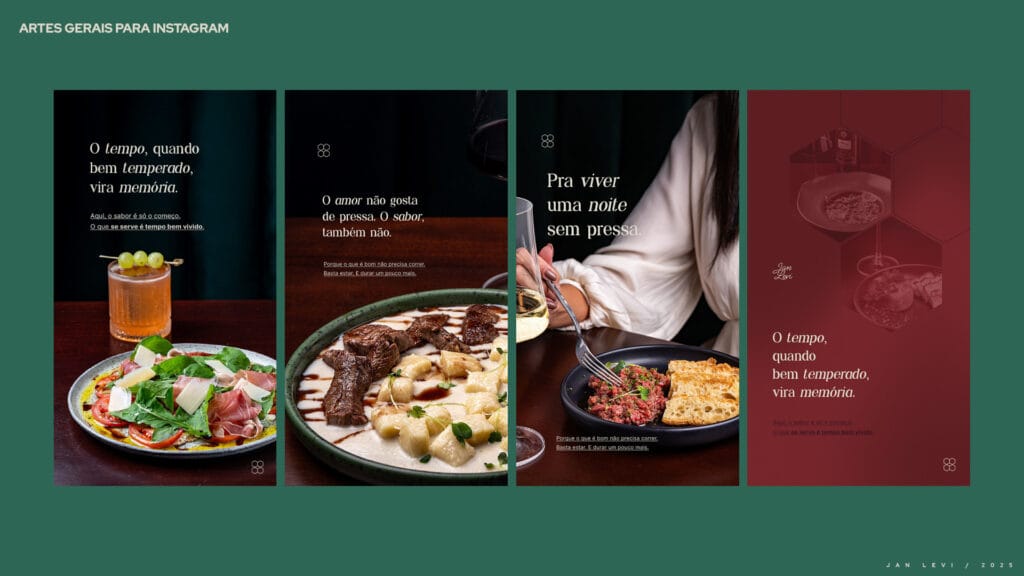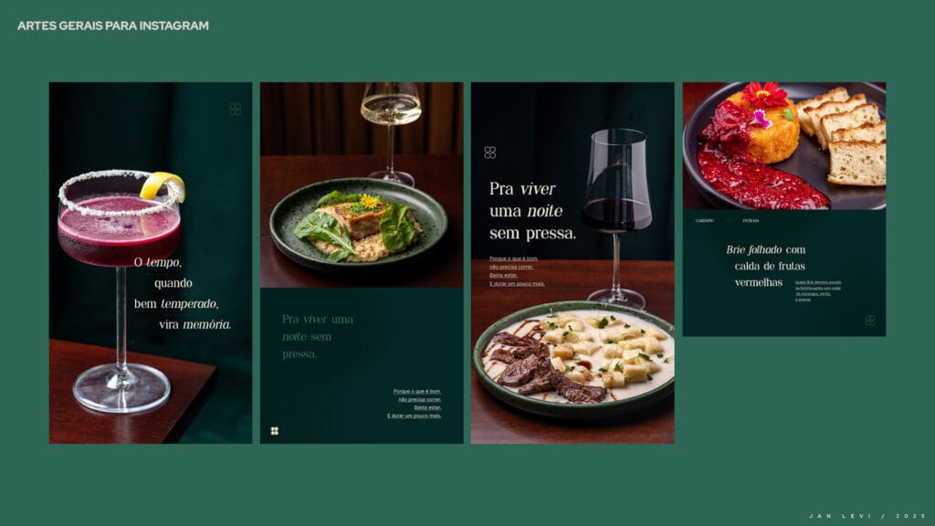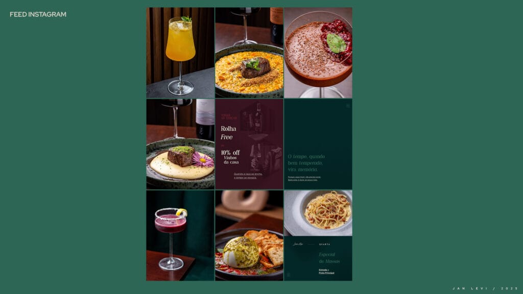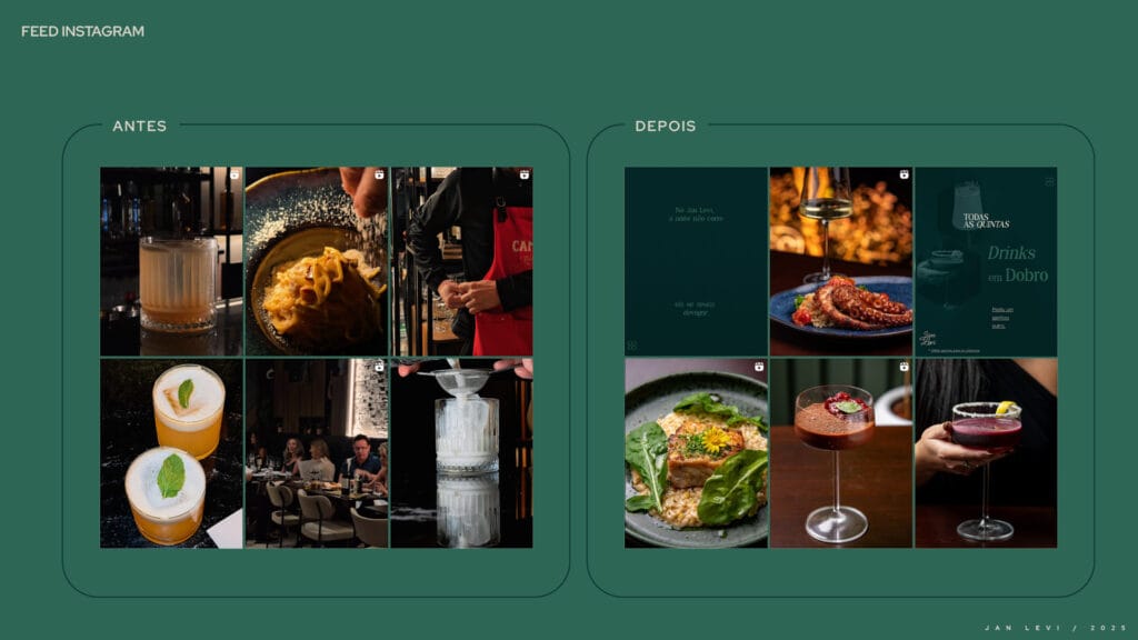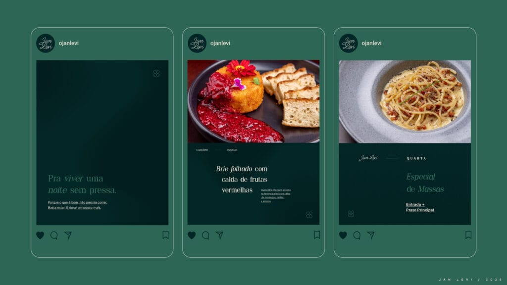 O Jan Levi não tinha imagens que faziam jus à experiência que oferece. Os pratos, ricos em sabor e cuidado, eram mal representados por fotos que não despertavam desejo. O Instagram se perdia em um mar genérico, sem consistência visual, sem identidade, sem emoção.
